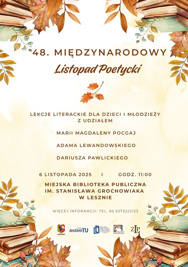 Międzynarodowy Listopad Poetycki to wydarzenie, które od lat promuje literaturę i łączy twórców z czytelnikami. Jak co roku, na początku listopada, leszczyńska biblioteka włącza się w jego obchody, organizując lekcje literackie prowadzone przez zaproszonych autorów – poetów, pisarzy i felietonistów.