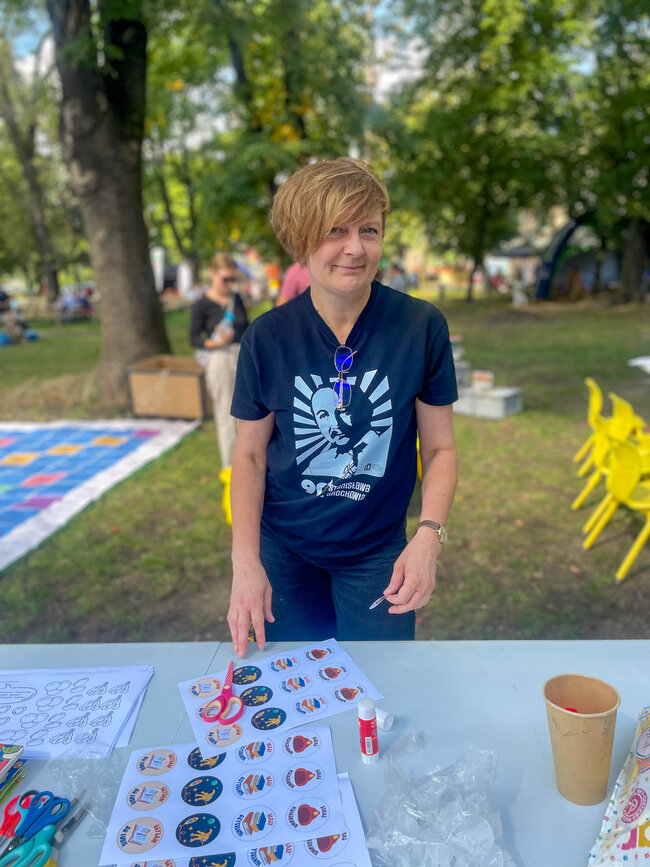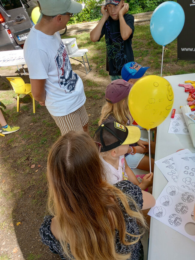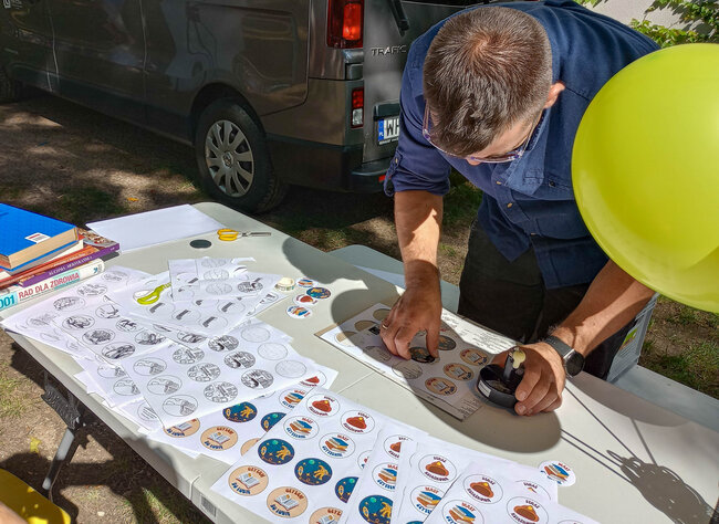 Dodatkowo przygotowaliśmy stoisko do projektowania i samodzielnego wykonania emblematów z motywem przewodnim „Literackie przysmaki”, którymi później ozdobiono biblioteczne balony. Na blisko stu balonach pojawiły się również rysunki inspirowane ulubionymi bohaterami literackimi.