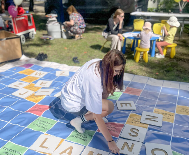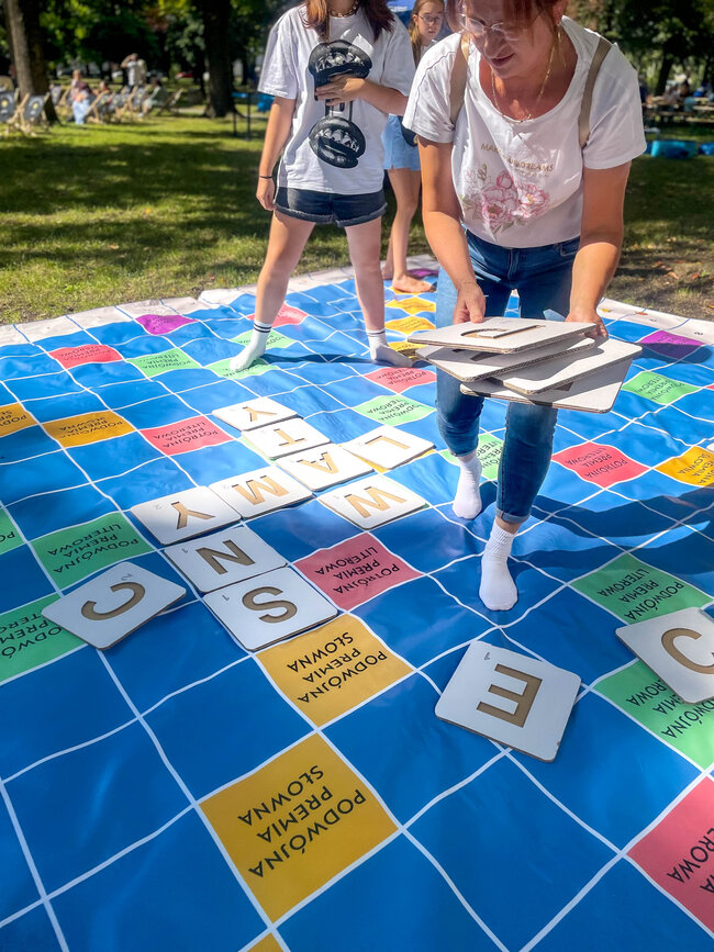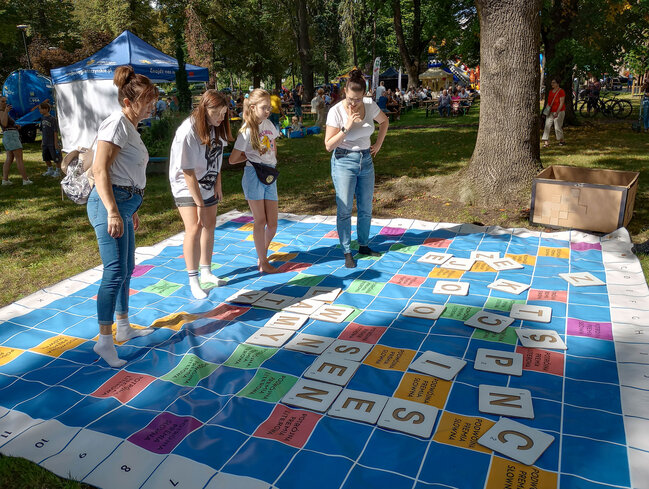 Podczas niedzielnego Pikniku Leszczyńskie Smaki Miejska Biblioteka Publiczna im. Stanisława Grochowiaka zaprezentowała, po raz pierwszy w plenerze, absolutną nowość: Giga-scrabble „Pożeracze słów” – literacką grę słowną dla całej rodziny, która cieszyła się ogromnym zainteresowaniem.