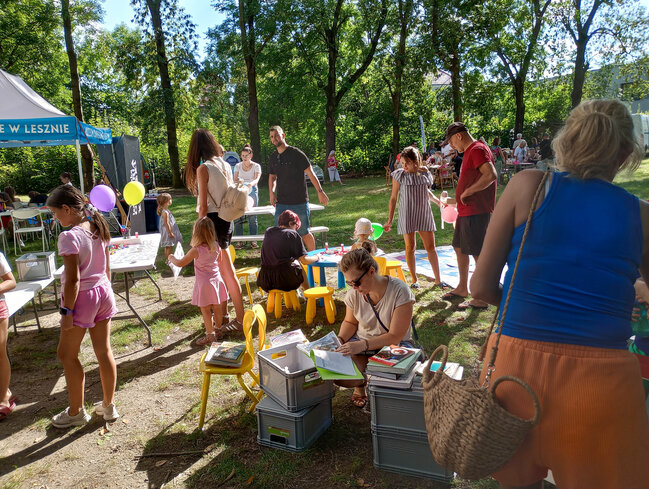 Nie zabrakło też słynnej Straży Książkowej – pojazdu bibliotecznego, który dostarczył książki w ramach bookcrossingu kulinarnego „Daj gryza, czyli smakowite historie”, a także był tłem do zdjęć i wielką frajdą dla dzieci.