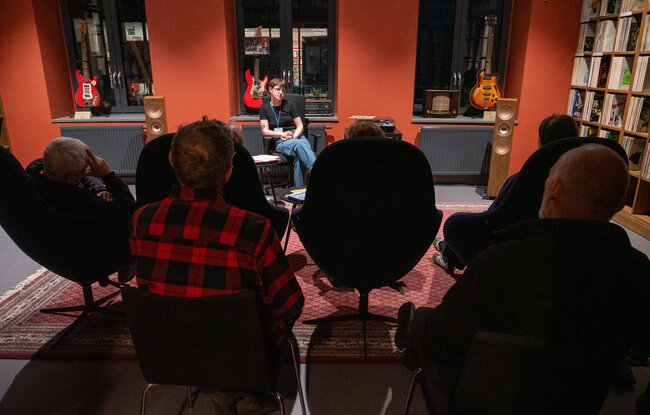 Spotkanie poprowadzono w formie muzycznego dialogu: uczestnicy słuchali nagrań z bibliotecznej fonoteki, wymieniali się wrażeniami i z ciekawością odkrywali, jak twórczo przenikają się dwa światy – pozornie odległe, a jednak zaskakująco zgodne rytmicznie.