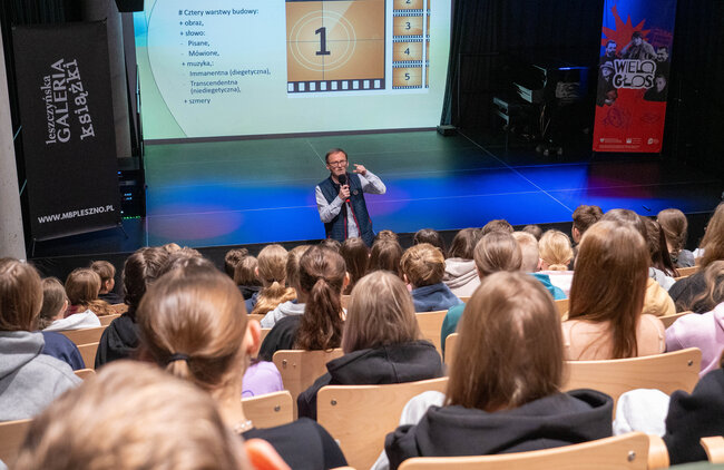 21 października 2025 roku Leszczyńska Galeria Książki zamieniła się w małą filmową pracownię myśli. Warsztaty w ramach projektu "Wielogłos" poprowadził dr hab. Wojciech Otto, który wprowadził młodzież w świat Wojciecha Jerzego Hasa. I to nie byle jaki – mowa o mistrzu obrazów, rytmu i narracyjnej tajemnicy, człowieku, który potrafił jednym ujęciem zrobić więcej niż niejedna współczesna megaprodukcja z efektami na pół budżetu Hollywood.