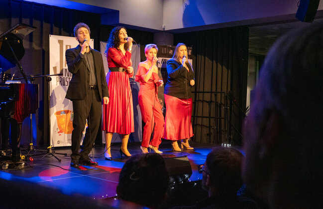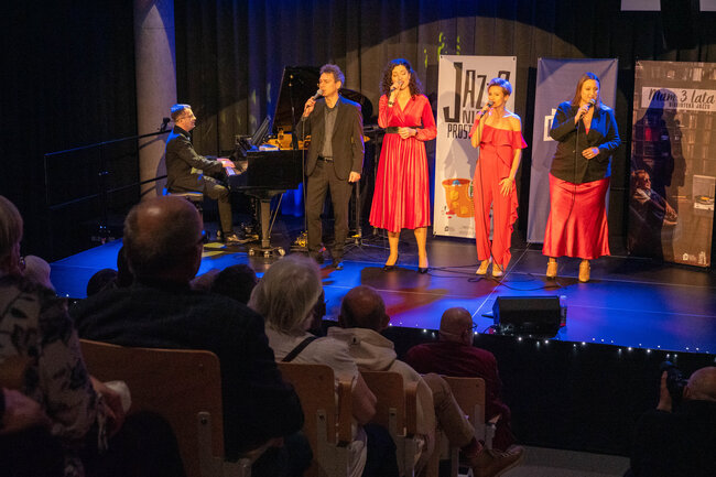 Centralnym punktem wieczoru był koncert zespołu The Soundpack. Jazzowy kwartet wokalny, działający od 2016 roku z inicjatywy Marcina Wawrzynowicza, zaprezentował program oparty na precyzyjnie zestrojonych głosach i wyrazistym jazzowym pulsie. Obok Wawrzynowicza na scenie wystąpiły Joanna Świniarska-Szebeszczyk, Katarzyna Mirowska i Małgorzata Biniek, a całość dopełniała partia fortepianu, na którym zagrał Bogusław Kaczmar. Cztery głosy, wsparte instrumentalnym akompaniamentem, brzmiały jak jeden organizm, przywołując skojarzenia z tradycją amerykańskich formacji wokalnych oraz z dorobkiem polskich Novi Singers.