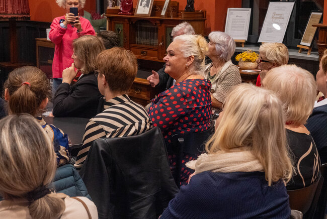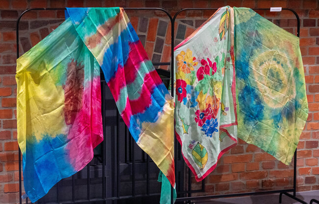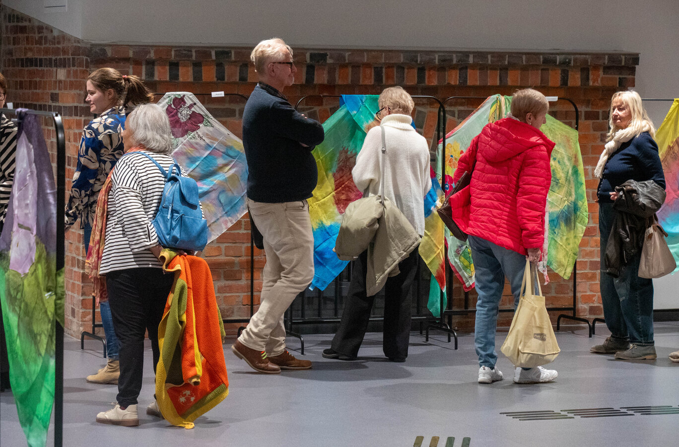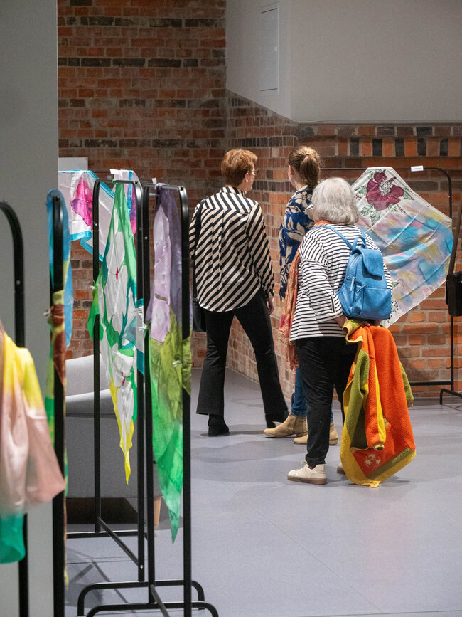 Na wystawie można było podziwiać barwne, niepowtarzalne prace wykonane na jedwabiu – delikatnym materiale, który wymaga zarówno precyzji, jak i wyczucia koloru. Uczestnicy spotkania mieli również okazję poznać publikację „Żyj kolorowo”, stanowiącą inspirację do poszukiwania w sztuce radości, spokoju i codziennej motywacji do działania.