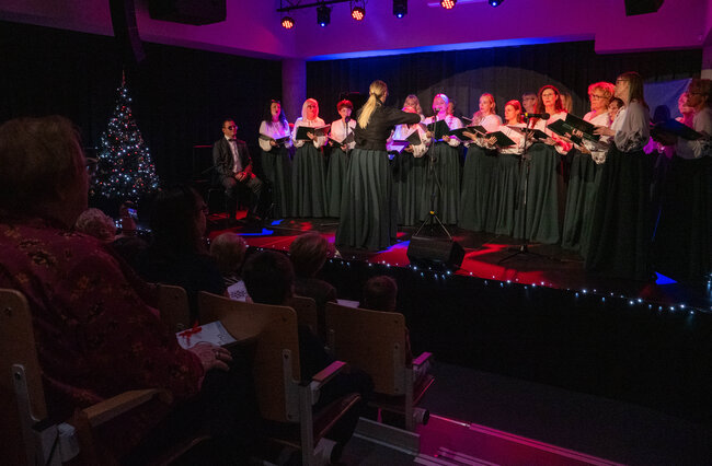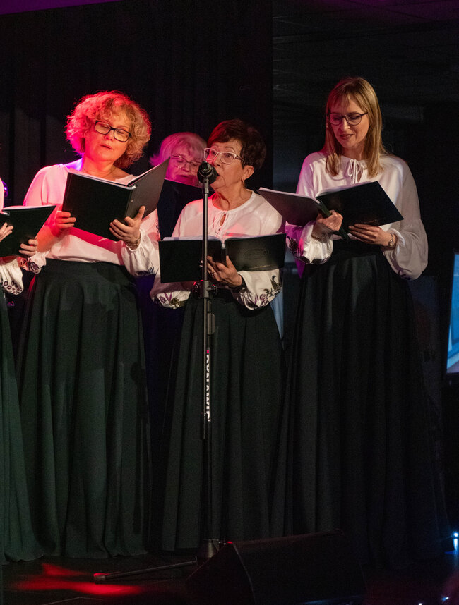 Wielogłosowe, naturalne brzmienie, uważność na słowo i emocję oraz wyraźna radość ze wspólnego śpiewu stworzyły przestrzeń, w której łatwo było zwolnić i na chwilę zapomnieć o przedświątecznym pośpiechu. Publiczność chętnie włączała się w śpiew, a biblioteczna sala szybko zamieniła się w miejsce spotkania, nie tylko koncertu.