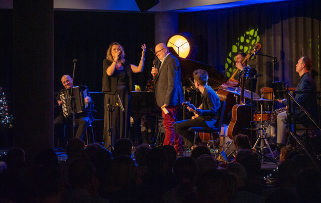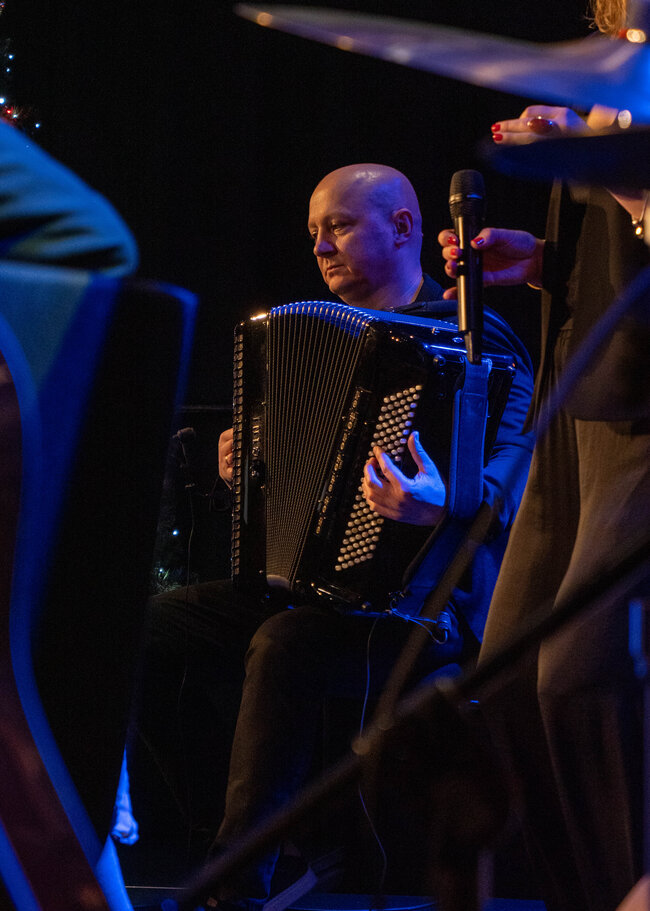 Na scenie wystąpili: Julia Sawicka (wokal, piano), Hubert Radoszko (gitara), Jarosław Buczkowski (akordeon), Żenia Betliński (kontrabas) oraz Mateusz Maniak (perkusja). Wspólne brzmienie zespołu stworzyło przestrzeń dla nastrojowych interpretacji, w których ciepło tradycji spotkało się z energią jazzu.