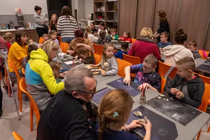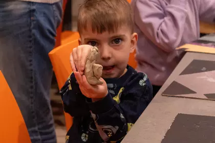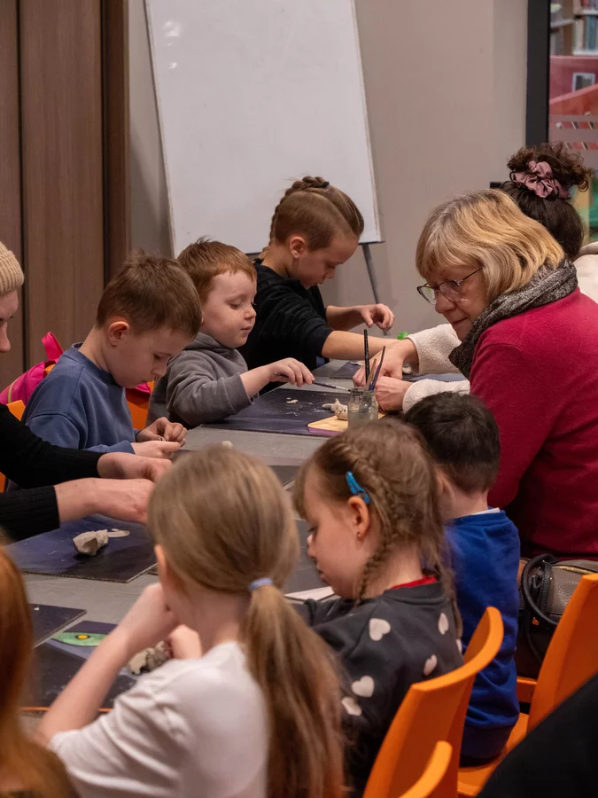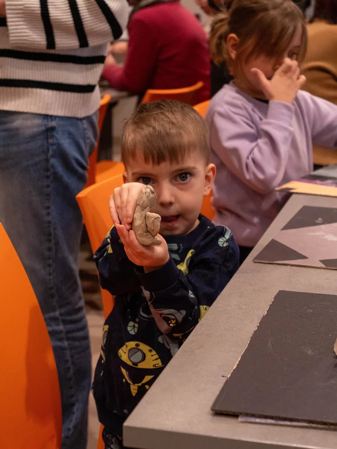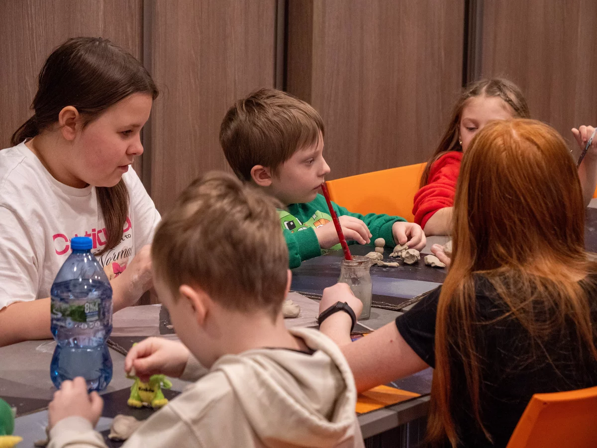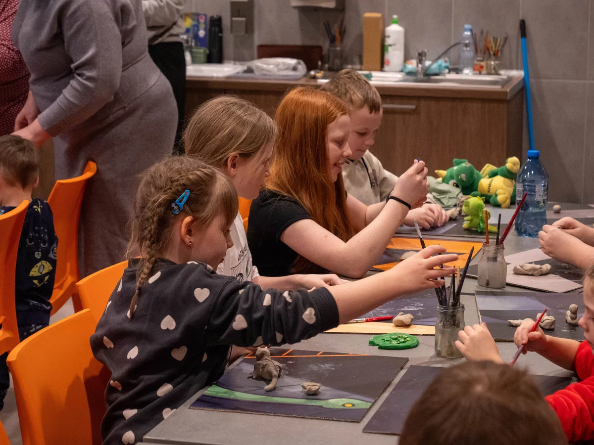 Po wysłuchaniu fragmentu historii dzieci przystąpiły do pracy z gliną. Powstawały smoki groźne i łagodne, maleńkie i monumentalne, z rozłożystymi skrzydłami, pancerzami z łusek i ogonami zawiniętymi w fantazyjne spirale. Każda forma była osobistą interpretacją usłyszanej opowieści - jedne oddawały emocje bohaterów, inne skupiały się na detalach i fakturach. Historia zyskała kształt, ciężar i strukturę.