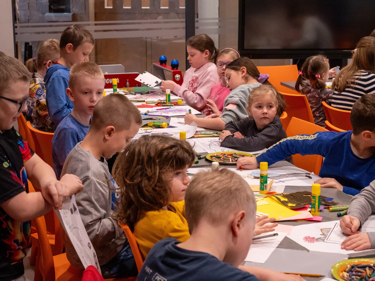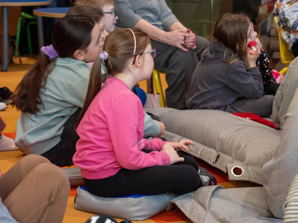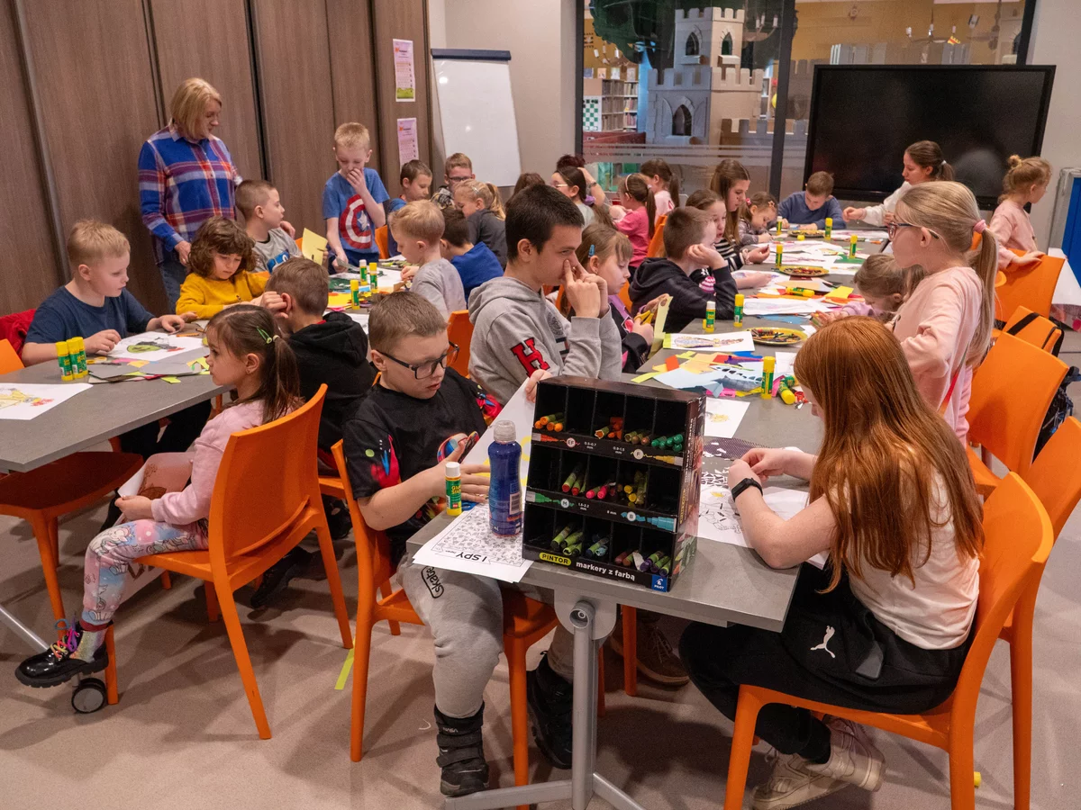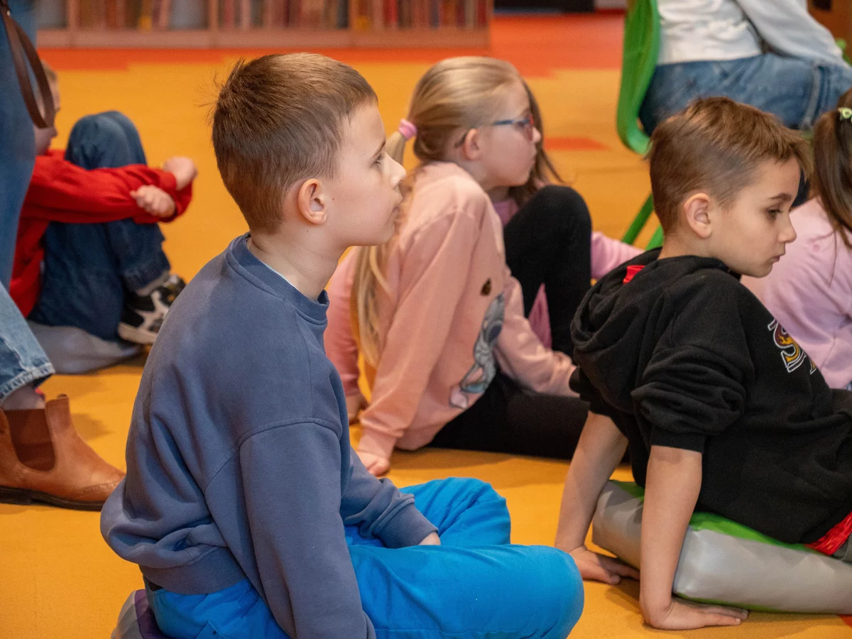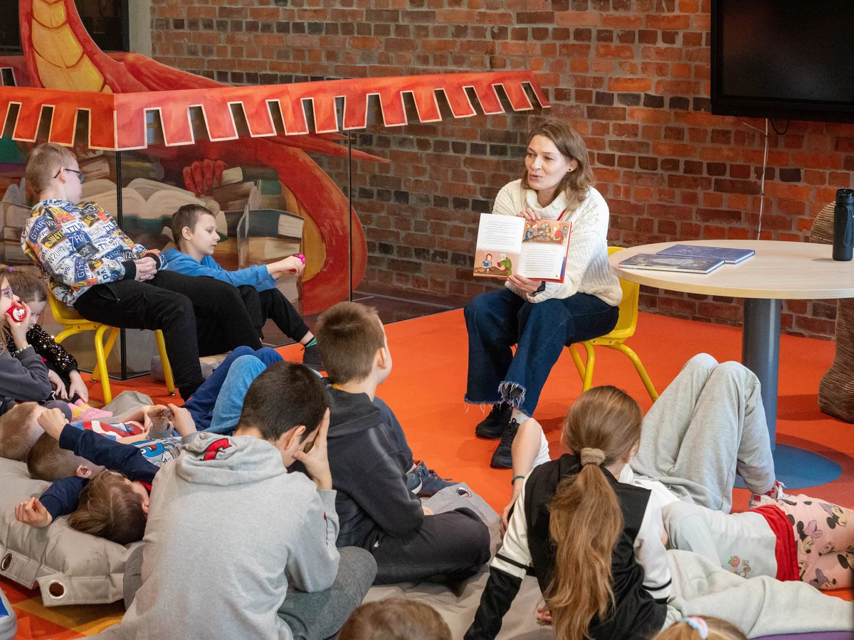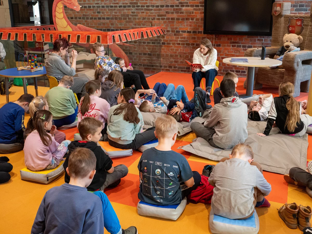 W czwartkowe południe (26 lutego 2026 r.) w ramach ferii „Zimowe opowieści” odbyły się „Opowieści o dzielnych rycerkach i rycerzach - legendarne warsztaty”. Było głośne czytanie, było budowanie napięcia, a potem - jak to zwykle bywa - sala zamieniła się w średniowieczne królestwo.