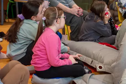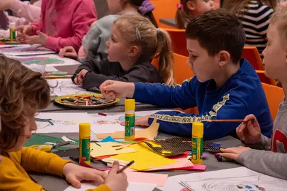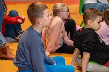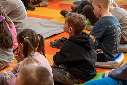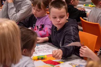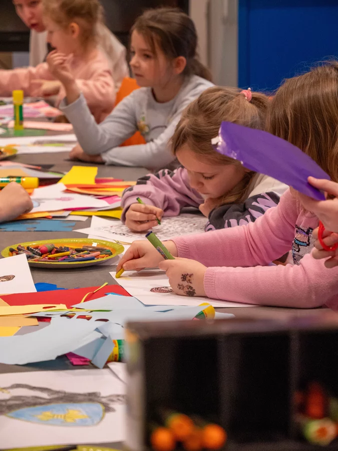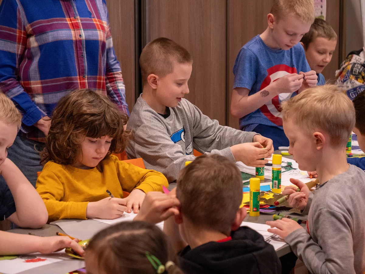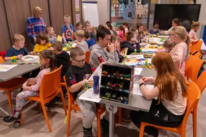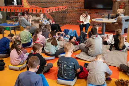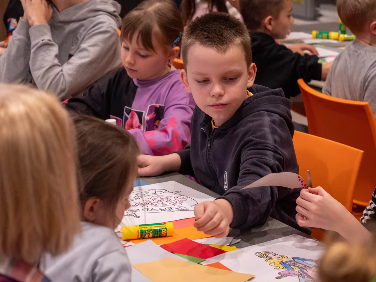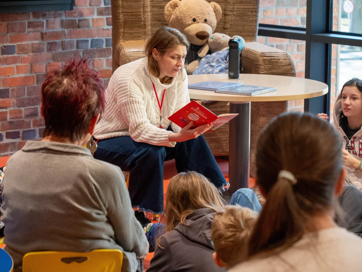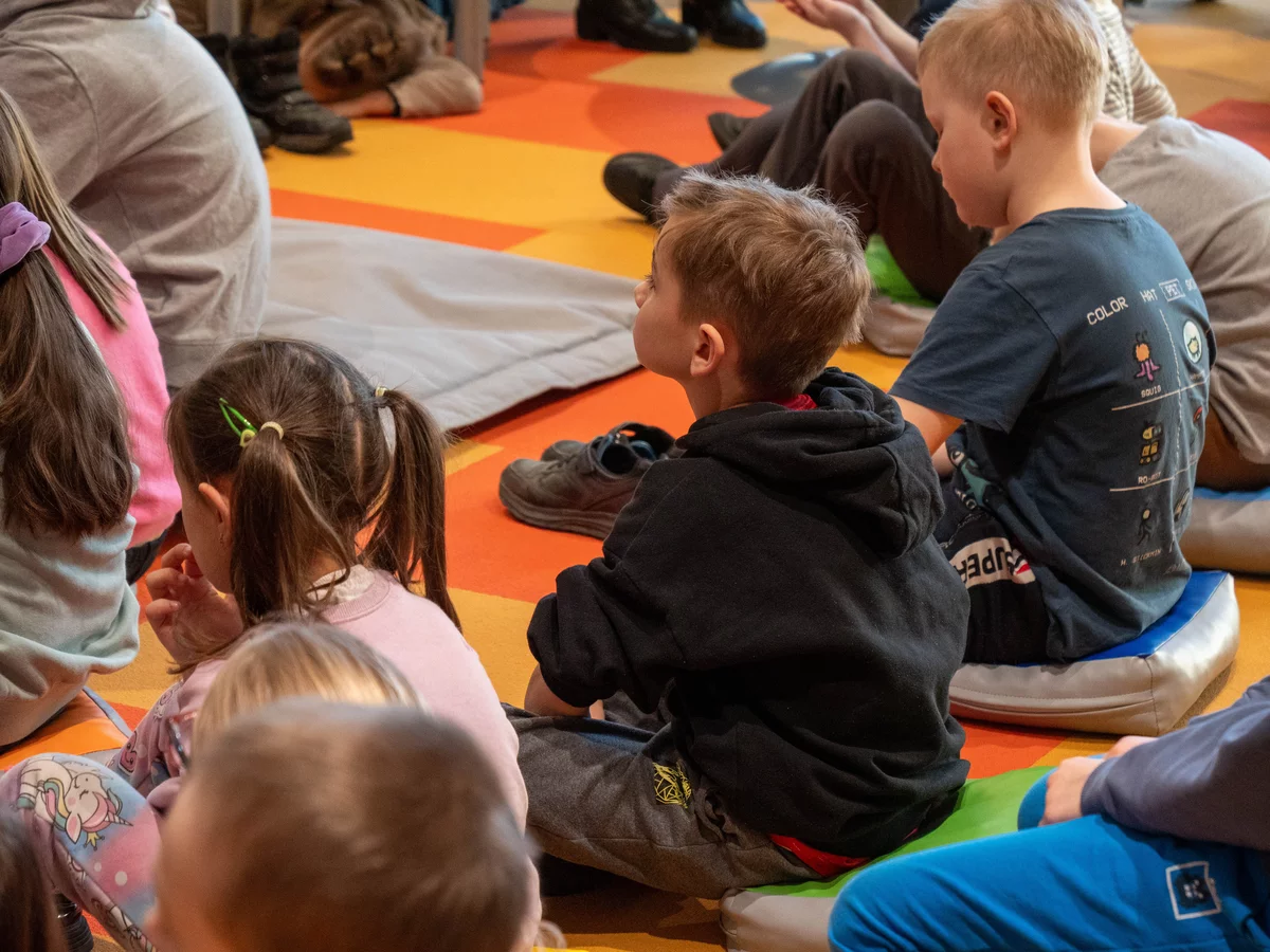 W czwartkowe południe (26 lutego 2026 r.) w ramach ferii „Zimowe opowieści” odbyły się „Opowieści o dzielnych rycerkach i rycerzach - legendarne warsztaty”. Było głośne czytanie, było budowanie napięcia, a potem - jak to zwykle bywa - sala zamieniła się w średniowieczne królestwo.