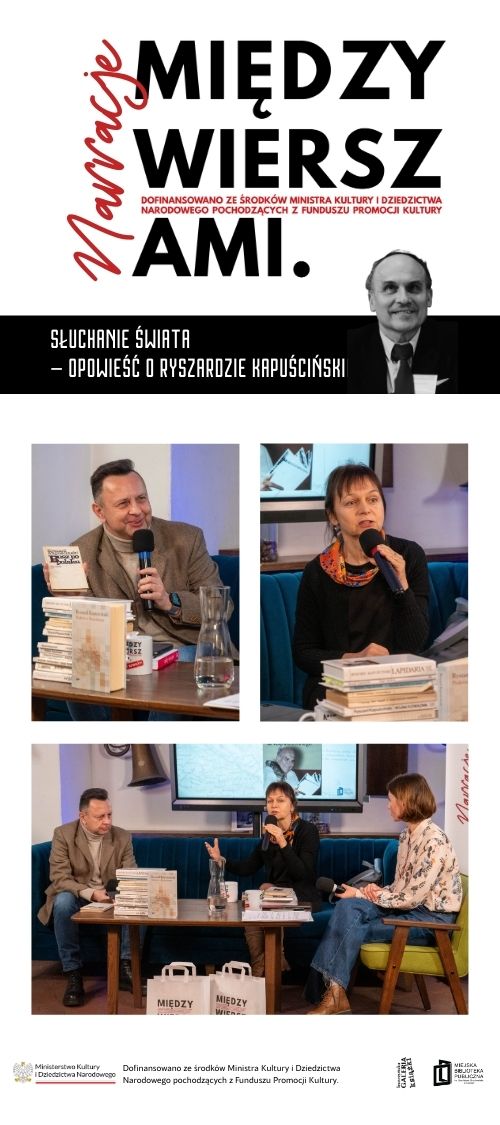 Wystawa prezentuje sylwetki prelegentów, badaczy literatury i znawców reportażu, którzy towarzyszyli tegorocznej edycji projektu „Między Wierszami: Narracje”. Stanowi podsumowanie cyklu spotkań w Bibliotece Ratuszowej, podczas których w kawiarnianej atmosferze rozmawiano o literaturze faktu, reporterskich wyborach i sposobach opowiadania rzeczywistości, wzbogacając dyskusje anegdotami i kontekstami biograficznymi.