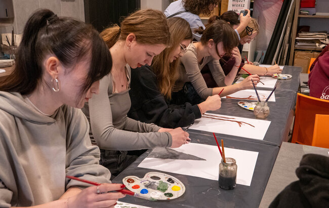Młodzi uczestnicy tworzyli, eksperymentowali i uczyli się patrzeć na ilustrację oczami artysty, który całe życie budował swoje własne światy. Instruktorka prowadziła ich krok po kroku przez proces twórczy: od pierwszych odważnych plam, przez budowanie kompozycji, aż po detale, które sprawiają, że rysunek nagle zaczyna „oddychać”. Atmosfera? Żywa, pełna śmiechu, skupienia i tej mieszanki ekscytacji z niedowierzaniem, że „wow, to naprawdę ja narysowałem?”.
