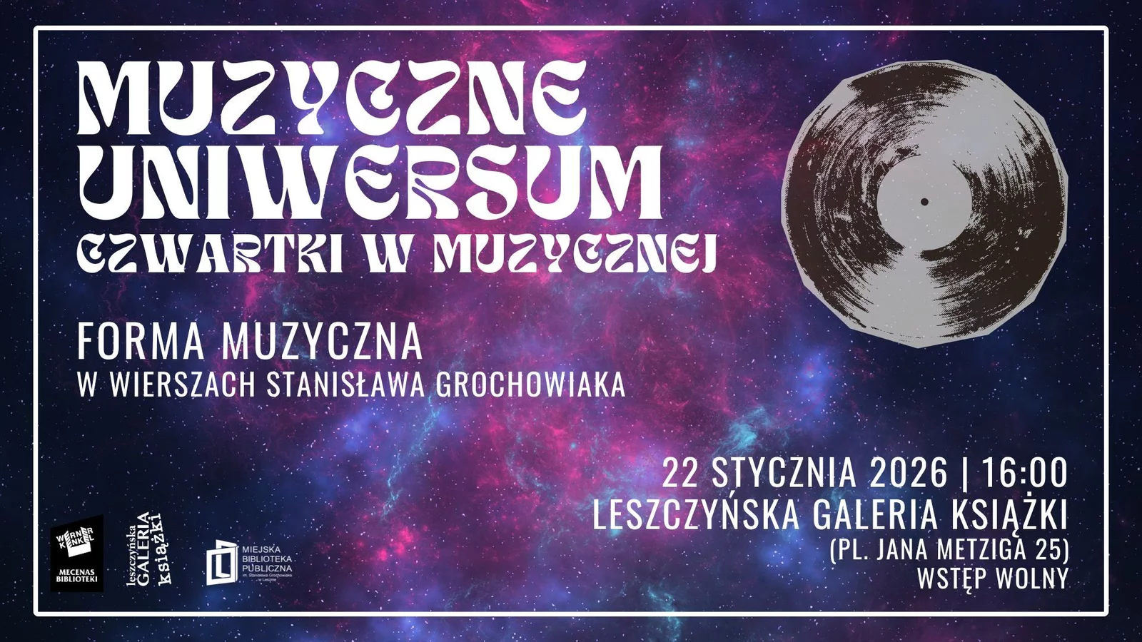 Muzyczne Uniwersum wraca z trzecim spotkaniem, które jednocześnie stanie się wprowadzeniem do Roku Grochowiaka. Tym razem punkt ciężkości przesuwa się z samej muzyki na literaturę i jej dźwiękowe zaplecze. Uczestnicy przyjrzą się temu, jak Stanisław Grochowiak próbował „wpisać” formy muzyczne w strukturę swoich wierszy i jak świadomie dialogował z tradycją kompozytorską różnych epok.
