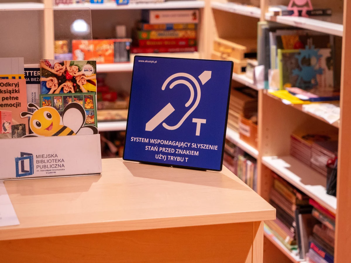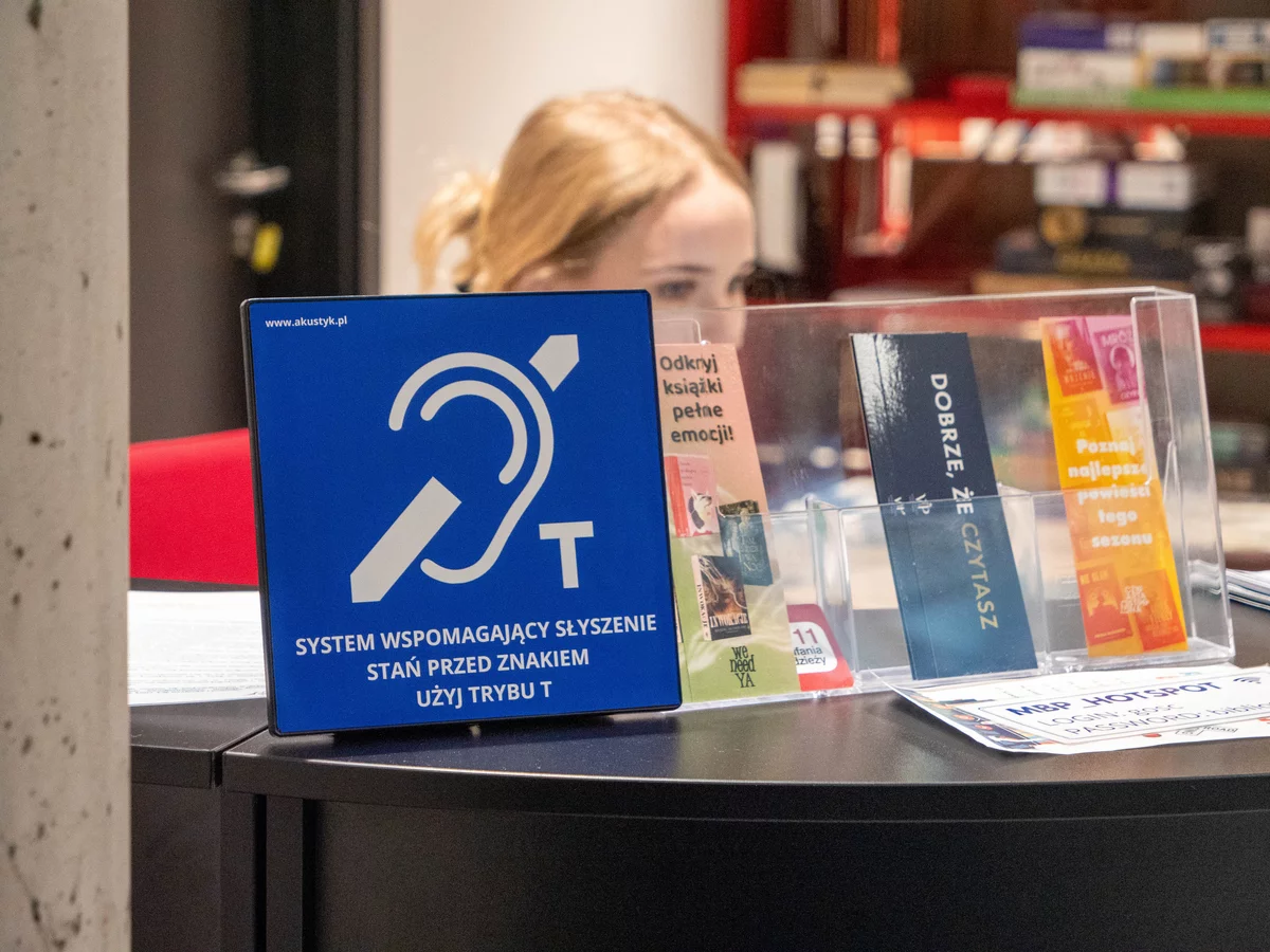 Dostępność to nie tylko podjazdy i szerokie drzwi - to także jakość komunikacji. Dlatego w Leszczyńskiej Galerii Książki zainstalowaliśmy pętle indukcyjne, które wspierają osoby niedosłyszące, korzystające z aparatów słuchowych.
