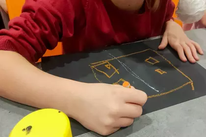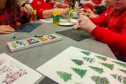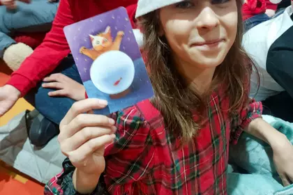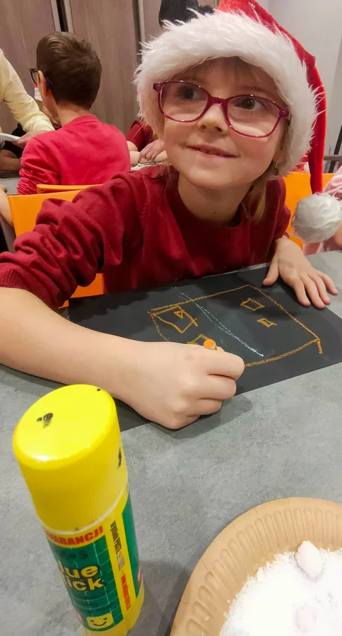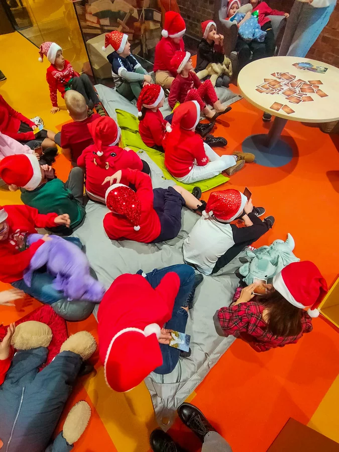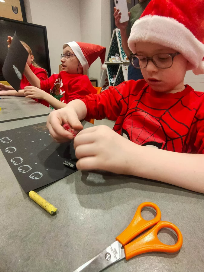 Podczas warsztatów panowała atmosfera skupienia połączona z naturalną dziecięcą swobodą. Dzieci eksperymentowały z zestawieniami, testowały faktury, bawiły się słowem i kolorem, a efekty ich pracy okazały się wyjątkowo różnorodne. Każdy kolaż opowiadał inną historię i pokazywał, jak odmienne mogą być perspektywy odbiorców tej samej opowieści.