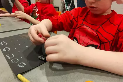 Zajęcia nie tylko pobudziły wyobraźnię, lecz także pokazały, jak w praktyce działa narracja wizualna i jak słowo może współtworzyć obraz. To było twórcze, sensoryczne i pełne odkryć spotkanie.