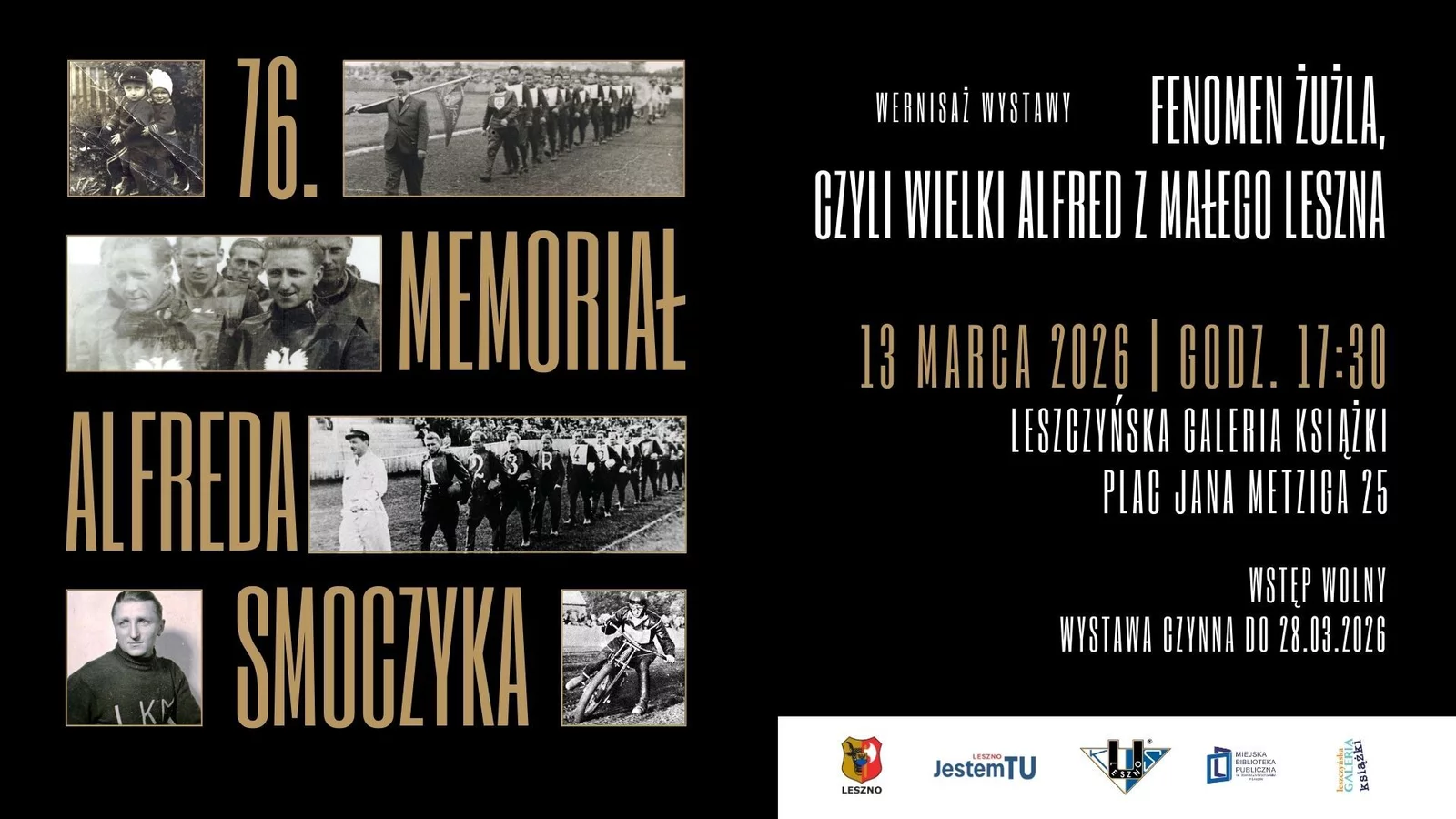 Klub Unia Leszno, Miasto Leszno oraz Miejska Biblioteka Publiczna im. Stanisława Grochowiaka w Lesznie zapraszają na wernisaż wystawy Fenomen żużla, czyli wielki Alfred z małego Leszna, która towarzyszy 76. Memoriałowi Alfreda Smoczyka. Wydarzenie odbędzie się 13 marca 2023 roku o godzinie 17:30 w Leszczyńskiej Galerii Książki przy placu Jana Metziga 25. Wstęp wolny.