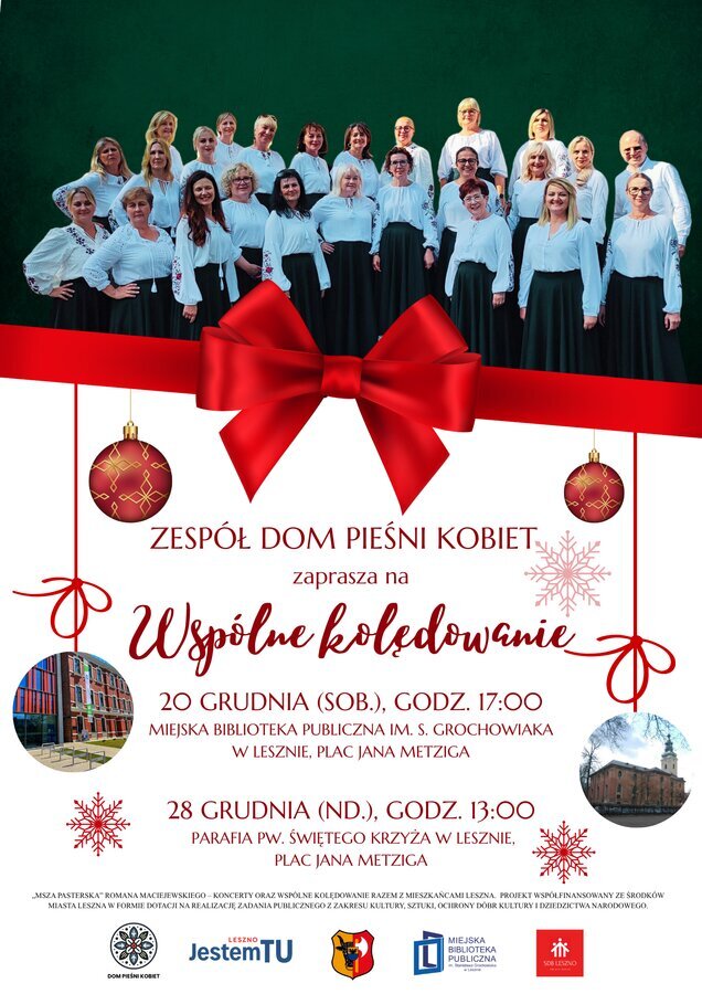 W sobotni wieczór 20 grudnia 2025 r., o godz. 17:00 w Miejskiej Bibliotece Publicznej im. Stanisława Grochowiaka w Lesznie (plac Jana Metziga) zabrzmią najpiękniejsze polskie kolędy i pastorałki w wykonaiu Zespołu Dom Pieśni Kobiet.