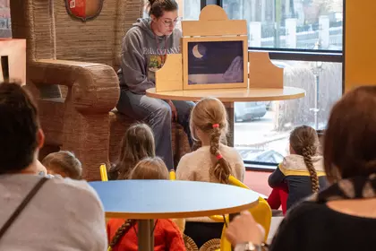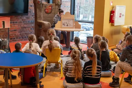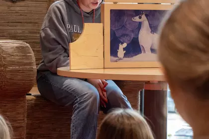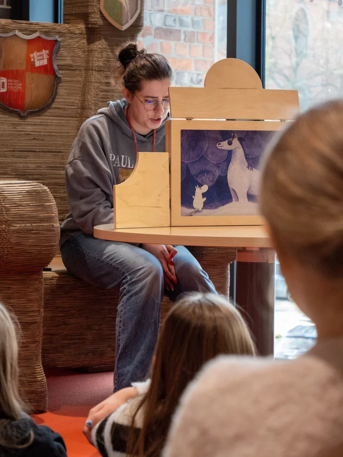 Dzisiejsze spotkanie w ramach „Zimowych opowieści” upłynęło pod znakiem teatru kamishibai i twórczej odwagi. Podczas zajęć „Zostań reżyserem własnej zimowej historii” dzieci nie tylko słuchały opowieści, ale same stanęły po drugiej stronie sceny.