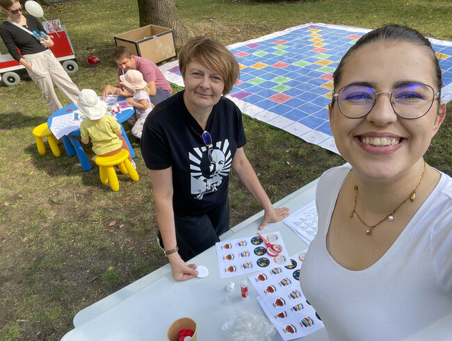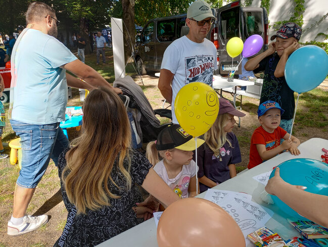 Dodatkowo przygotowaliśmy stoisko do projektowania i samodzielnego wykonania emblematów z motywem przewodnim „Literackie przysmaki”, którymi później ozdobiono biblioteczne balony. Na blisko stu balonach pojawiły się również rysunki inspirowane ulubionymi bohaterami literackimi.