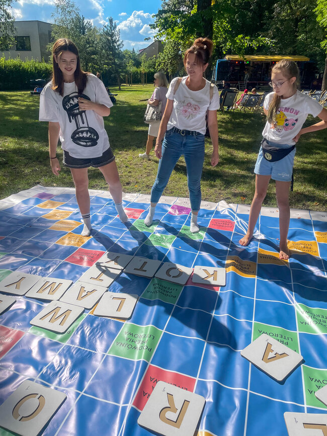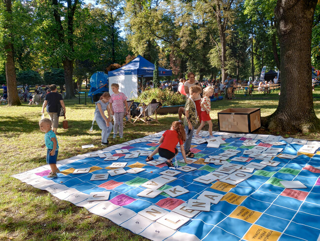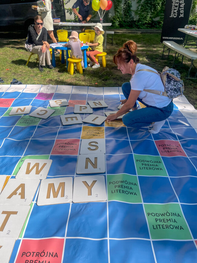 Podczas niedzielnego Pikniku Leszczyńskie Smaki Miejska Biblioteka Publiczna im. Stanisława Grochowiaka zaprezentowała, po raz pierwszy w plenerze, absolutną nowość: Giga-scrabble „Pożeracze słów” – literacką grę słowną dla całej rodziny, która cieszyła się ogromnym zainteresowaniem.
