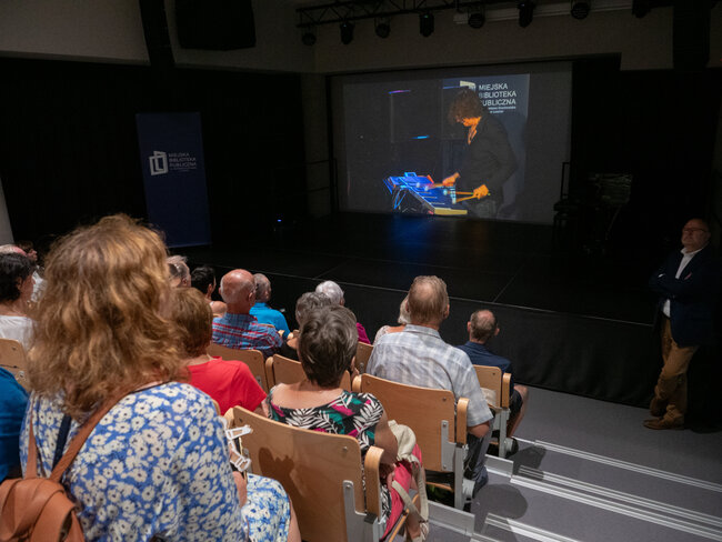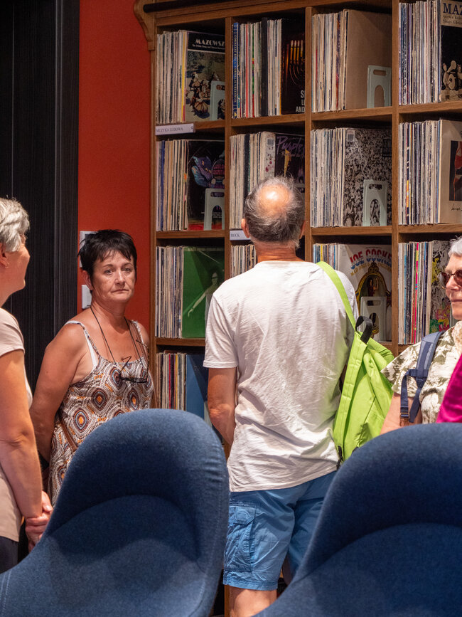 Zwiedzanie rozpoczęliśmy od Pasażu Kultury, który łączy w sobie przestrzeń spotkań, wystaw i wydarzeń artystycznych. Następnie odwiedziliśmy Czytelnię Naukową – królestwo wiedzy i ciszy – oraz Bibliotekę Jazzu, unikatowe miejsce w Polsce, w którym muzyka i literatura przenikają się w wyjątkowy sposób.