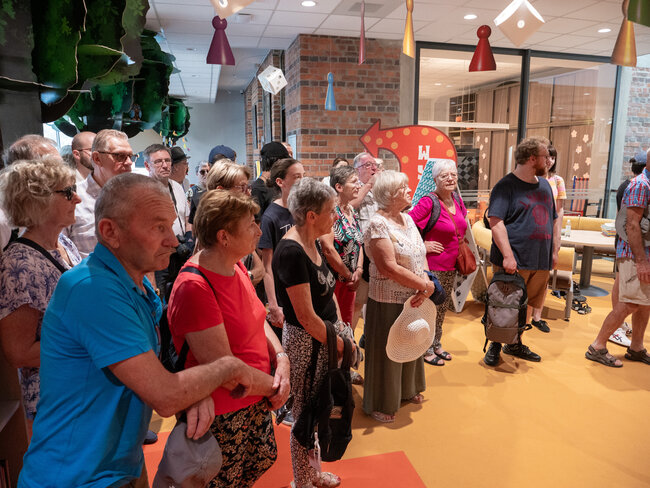 Delegacja zajrzała także do Wypożyczalni Młodzieżowej i Dziecięcej, tętniących życiem i kolorami, a także do Sali Audiowizualnej, gdzie goście obejrzeli fragment jazzowego koncertu. Nie mogło zabraknąć wizyty w Pokoju Grochowiaka, poświęconym twórczości jednego z najwybitniejszych poetów naszego regionu.