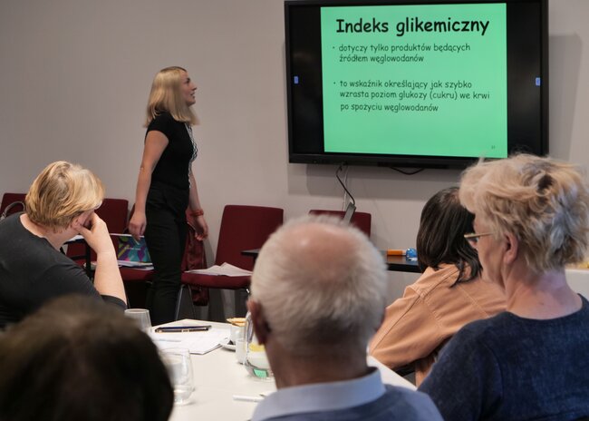 W szkoleniu wzięli udział członkowie Fundacji Jesienny Uśmiech oraz osoby przybyłe z Ukrainy z problemami cukrzycowymi lub opiekujące się osobami z tą chorobą.