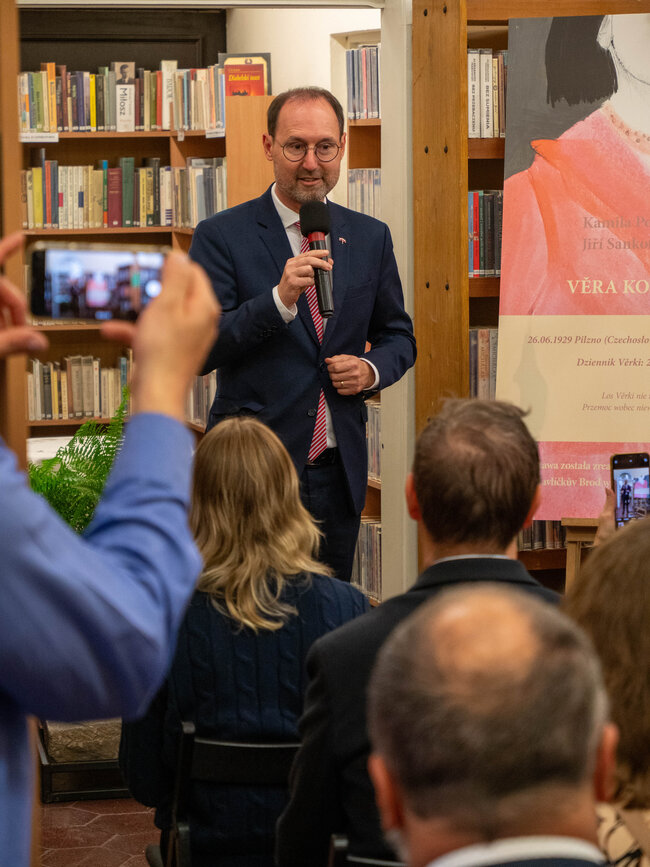 W sobotę, 18 października, w Bibliotece Dwójce odbył się wernisaż niezwykłej wystawy „Dziennik Věrki”, przygotowanej przez Galerię i Muzeum Vysočiny w Havlíčkův Brod we współpracy z Miejską Biblioteką Publiczną im. Stanisława Grochowiaka w Lesznie. Gościem wydarzenia był Břetislav Dančák, Ambasador Republiki Czeskiej, który w swoim wystąpieniu podkreślił znaczenie wspólnej pamięci i dialogu między narodami.