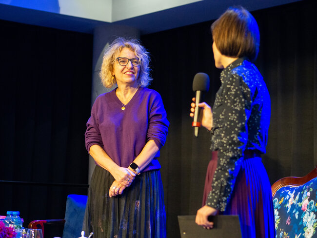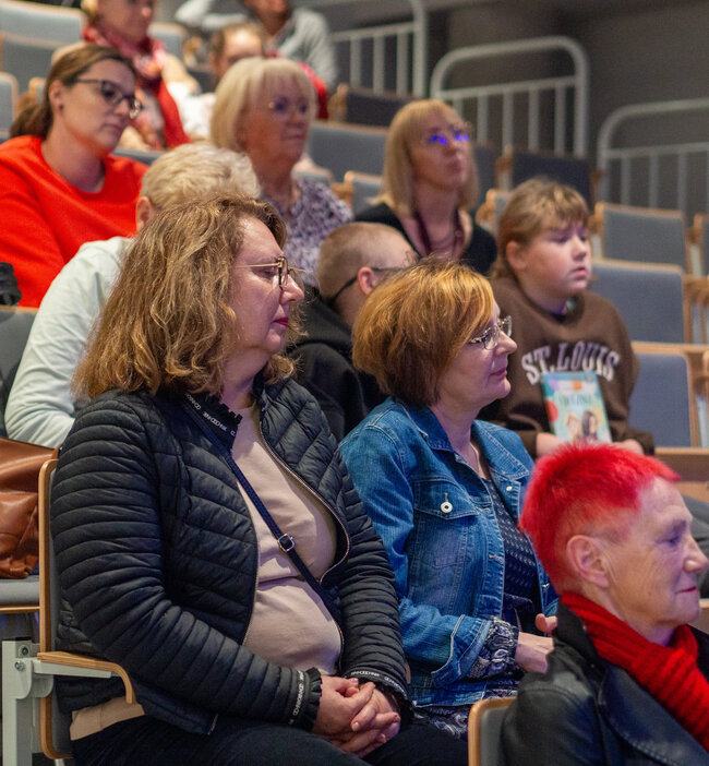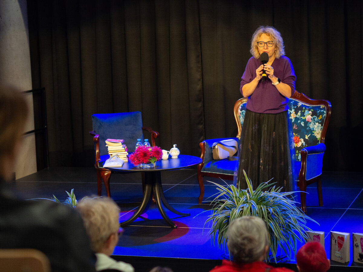 W ramach Nocy Bibliotek odbyło się spotkanie z Joanną Jagiełło! Autorka bestsellerów porwała wszystkich swoją otwartością i dowcipem. Opowiadała o kulisach swojego pisarstwa oraz dzieliła się historiami z życia codziennego, które często stanowią inspirację do jej książek. Przyznała, że niektóre postacie w jej powieściach są oparte na prawdziwych osobach, zazwyczaj jej córkach – Julii i Barbarze. Uczestnicy mieli okazję zadawać pytania, a rozmowa toczyła się jak przy kubku gorącej herbaty – lekko i przyjemnie.