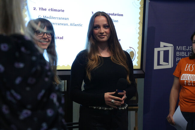 Tym razem naprzeciw siebie wystąpili przedstawiciele dwóch różnych krajów - słonecznej Grecji i romantycznej Francji. O tym, co wyróżnia te dwa kraje, opowiadali wolontariusze Fundacji Centrum Aktywności Twórczej: Brayan, Charlotte, Jeanne i Juliette z Francji oraz Denise i Marianne z Grecji. Dzięki ich prezentacjom multimedialnym i opowieściom usłyszeliśmy mnóstwo ciekawostek na temat historii, kultury, tradycji i zwyczajów tych europejskich państw. Jestem pewna, że po tym spotkaniu jego uczestnicy wezmą te kierunki pod uwagę, przy planowaniu tegorocznych wakacji.