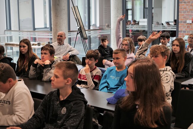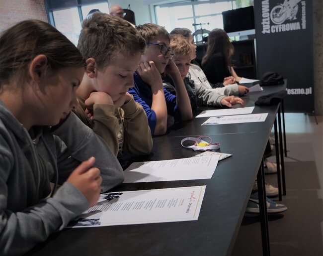 W warsztatach na temat pieśni narodowych udział wzięli uczniowie klasy Va Szkoły Podstawowej nr 13 w Lesznie. Młodzież zmierzyła się z najstarszym zapisem ,,Bogurodzicy’’ próbując go odczytać i zrozumieć. Wysłuchała aktorskiej deklamacji próbującej odtworzyć, jak przed wiekami mogły brzmieć słowa pieśni i odsłuchała chóralnego wykonania ze sceny bitwy pod Grunwaldem w ,,Krzyżakach’’ Aleksandra Forda. Z bitwą tą wiąże się i inna, niezwykle ważna dla naszej historii pieśń - ,,Rota’’ Marii Konopnickiej z muzyką Feliksa Nowowiejskiego. Wiersz powstał w 1908 roku, a już dwa lata później - w 500-rocznicę bitwy pod Grunwaldem - pod batutą Nowowiejskiego śpiewało ją gromko kilkaset polskich chórów.