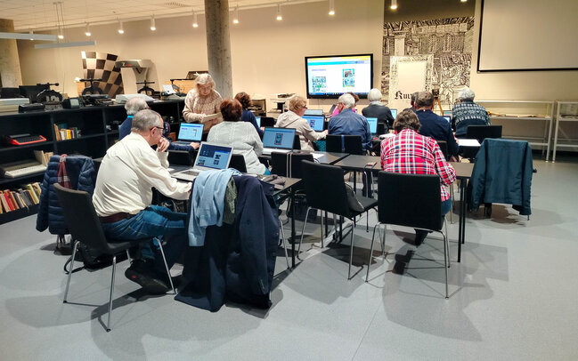 Na kolejnych warsztatach cyfrowych uczestnicy mieli okazję zobaczyć proces digitalizacji „od kuchni” w Pracowni Digitalizacji. Andrzej Przewoźny pokazał sprzęt, techniki i etapy powstawania cyfrowych kopii zbiorów historycznych. Warsztat był okazją do bezpośredniego kontaktu z technologią, która pozwala zachować dla przyszłych pokoleń lokalne dziedzictwo piśmiennicze. Wydarzenie odbyło się 4 grudnia 2025 r.