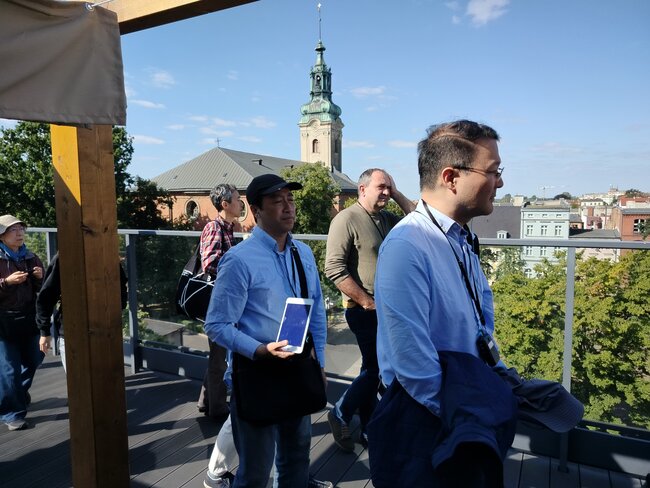 Podczas wizyty goście mieli okazję zwiedzić bibliotekę, zapoznając się z jej zasobami oraz architekturą. Kulminacyjnym punktem było spotkanie w czytelni letniej, zlokalizowanej na dachu budynku. W tym niezwykłym miejscu, z panoramicznym widokiem na miasto, japońscy naukowcy wysłuchali wykładu, który przybliżył im historię Leszna oraz specyfikę współpracy różnych grup wyznaniowych, które przez wieki współistniały w tym mieście.